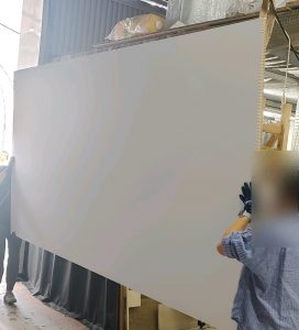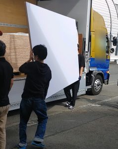3日(金)午前中にRe-boardの搬入作業がありました。 Re-boardの搬入は社員総出で行ないます。 「Re-boardが届きました。これから搬入作業が始まります。みなさん集合してください」という社内アナウンスを流すと、みんな持ち場の作業を中断して軍手を持って集まってくれます。 男性も女性もみんなで運びます。 何度も往復するので途中で腕に負担がきてヒィーヒィ言いながら運ぶのですが、私はこの作業が結構好きです。 みんなで協力して行う作業だから好きなんですよね(^^)/