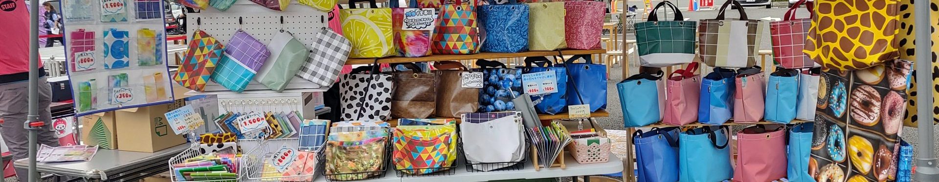 マルシェに出店し始めてちょうど一年が経ち、今回は一周年記念の感謝価格でバッグを販売しました。