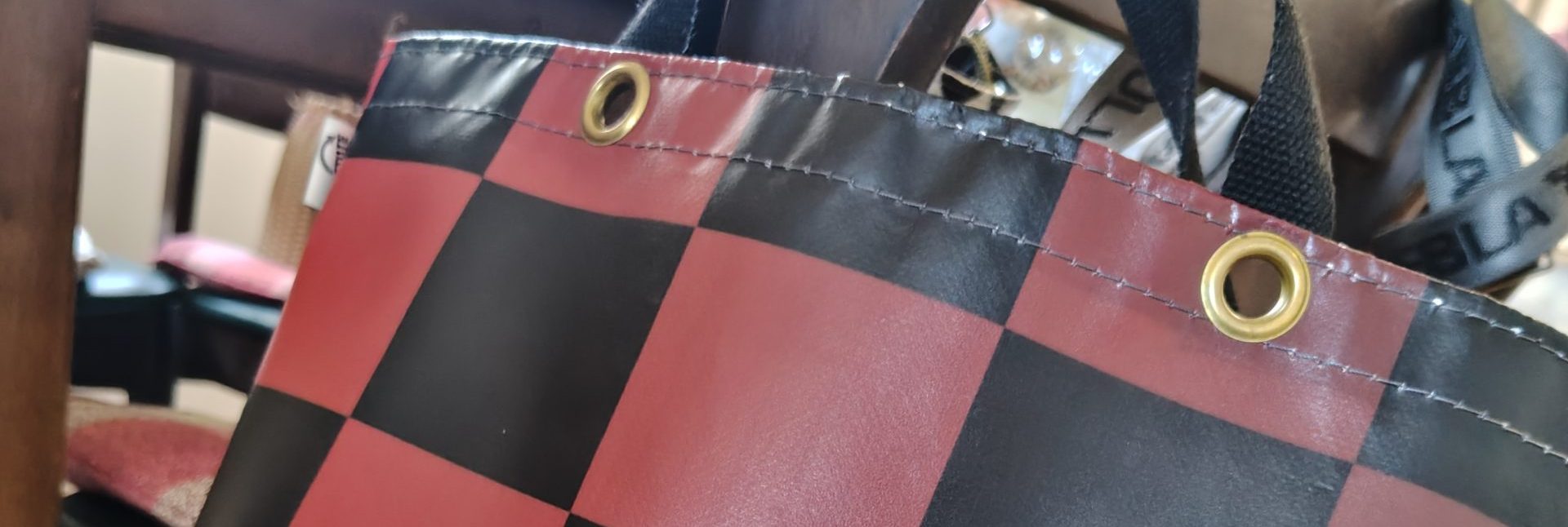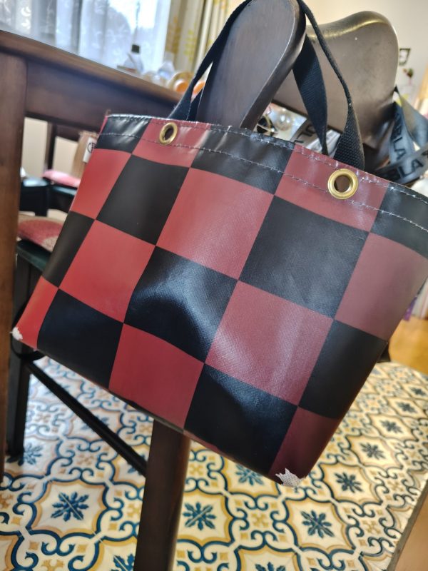 ターポリンの中でもしっかりとした生地で、赤と黒のきれいな市松模様が気に入ったそうです。